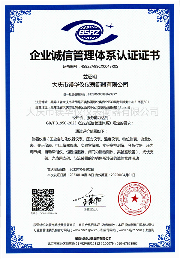 企业诚信管理体系认证证书