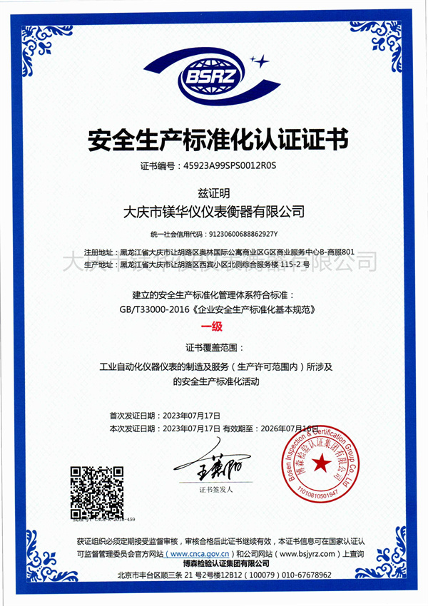 安全生产标准化认证证书